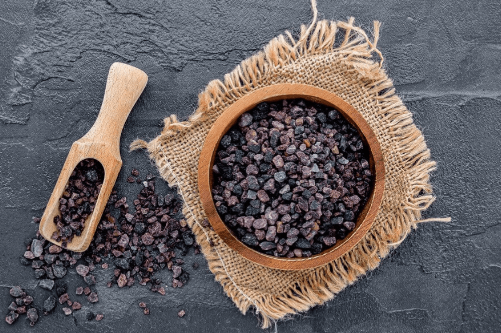 Himalayan rock salt is often referred to as black salt, Kala namak, or Suleimani namak in South Asia. Black salt’s main component is sodium chloride, along with trace minerals such as sulphates, sulphides, iron, potassium, zinc, and magnesium. Black, reddish-brown, and purple are the three different colour tones of black salt crystals; however, it also appears in powder form with violet or pinkish mixed shade. Due to the high concentration of hydrogen sulphide in it, it has a characteristic strong odour. It also has a distinct taste that enhances the flavour of our foods and beverages, while some individuals find the taste to be sulphurous and smokey. Black salt contains minor levels of sulphates and sulphide, both of which are entirely harmless in moderation. and healthy to consume.