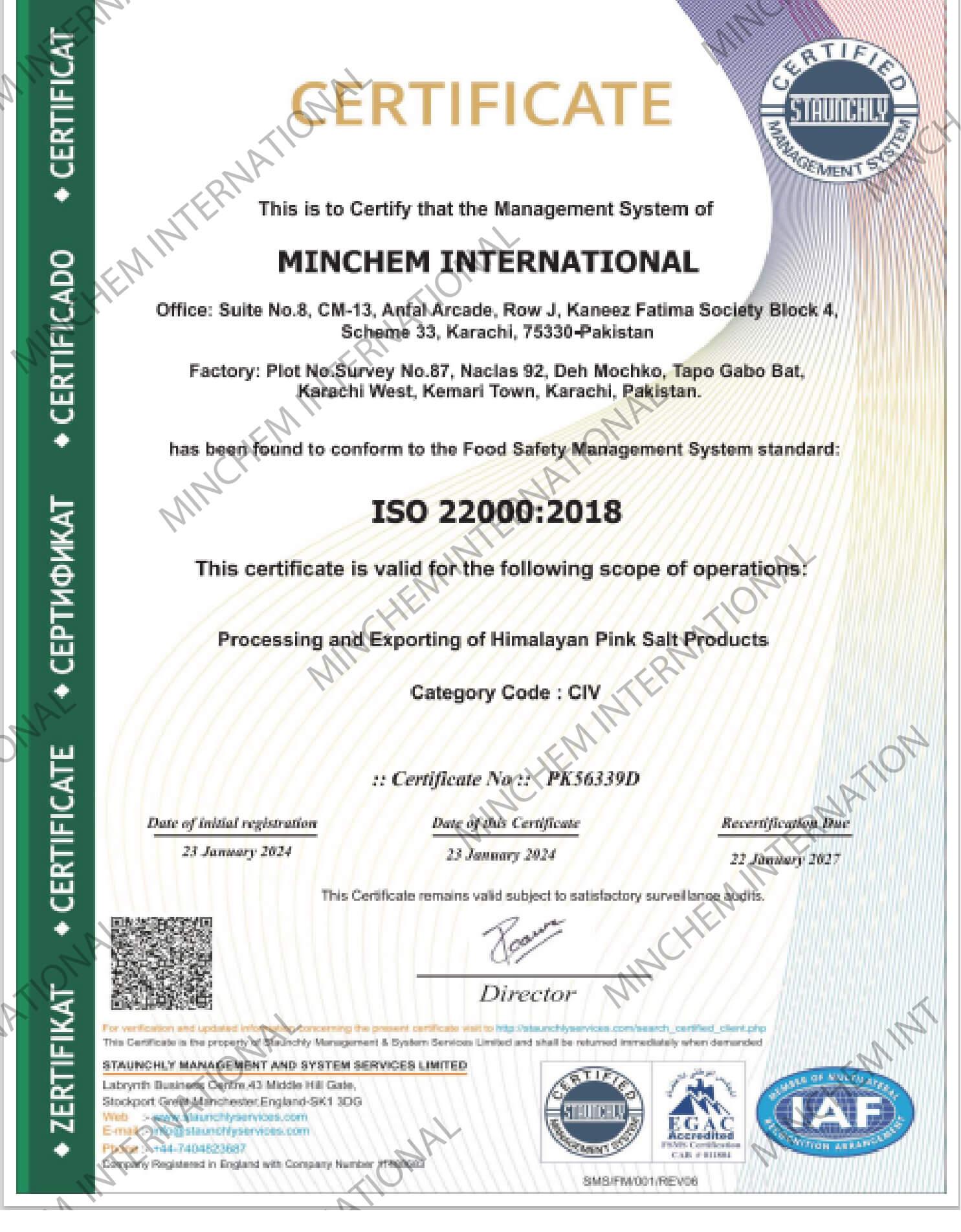 Minchem International is a company that started in 2015. It’s the leading manufacturer and global supplier of high-quality Himalayan salt, spices, seeds, recipe mixes, and rice. We are proud of our products that respond to diverse culinary needs and promote worldwide kitchen experiences. With the help of advanced technology and modern processing, we developed our range, which expresses the utmost standards of quality and freshness with the intention of delivering excellence at all levels.